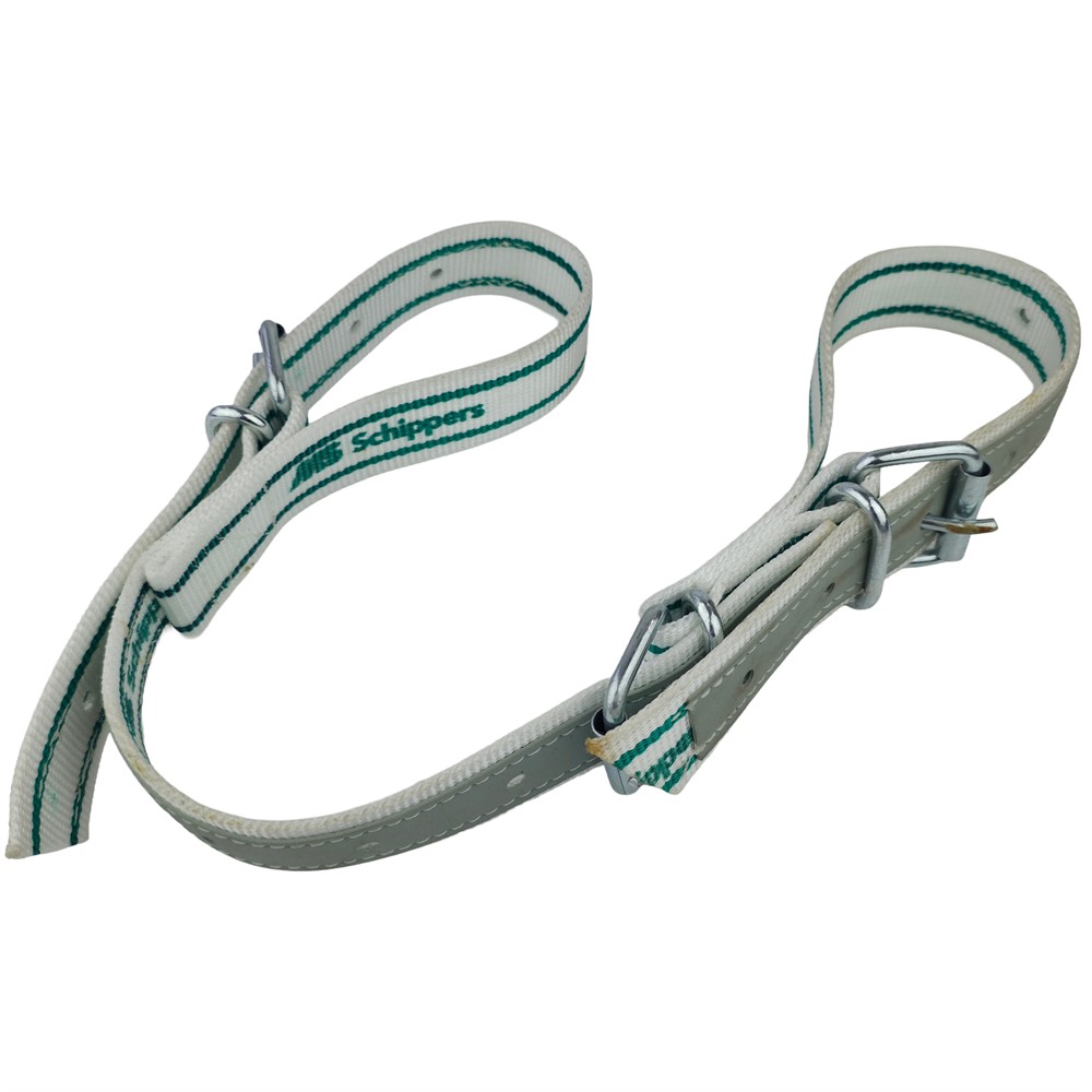 Justerbart fläkband för att hålla ihop bakbenen och förhindra skador, exempelvis motverka fläkning efter kalvning. Denna bensele är förstärkt med läder.