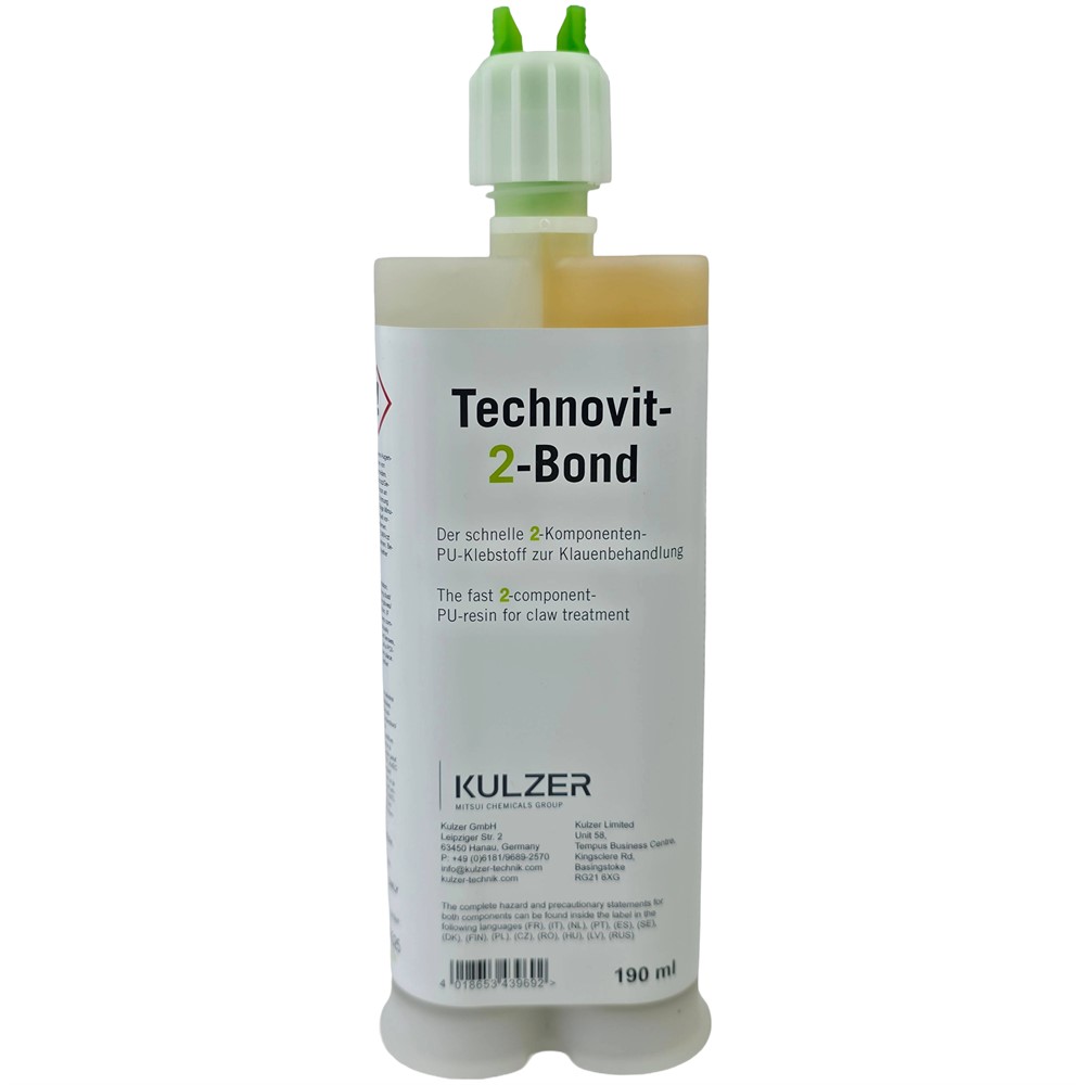 190 ml tub med klövlim (Technovit-2-Bond) som används för klövbehandling. Limmet är snabbtorkande tvåkomponentslim vilket underlättar fastsättning av klövkloss på klöven. Technovit-2-Bond torkar inom 30 sekunder och fäster bra på trä- och gummiklossar.