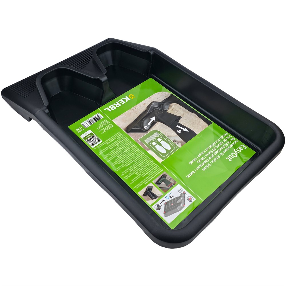 Stövelkneckt utformad för smidig avtagning av stövlar och skor. Stövlarna står sedan i en smidigförvaring som samlar upp smuts och lera. Smidig att rengöra genom att skölja av med vatten. Lämplig för exempelvis lantbruk, stall, byggarbetsplatser eller i hemmet.