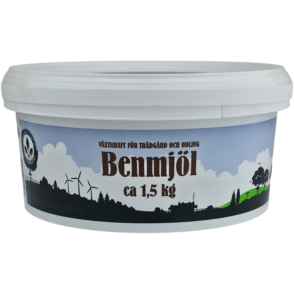 Benmjöl är ett naturligt, organiskt gödselmedel som verkar långsamt och jämt över tid. Det passar särskilt bra till ätliga växter i kökslandet.